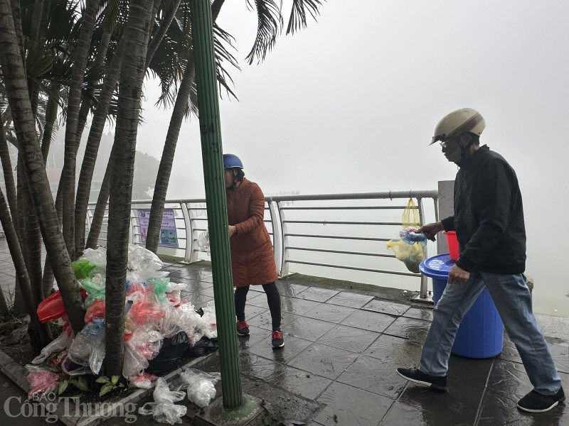| Túi nilon được tập trung gọn lại một chỗ, tránh vứt xuống hồ gây ô nhiễm môi trường nước |