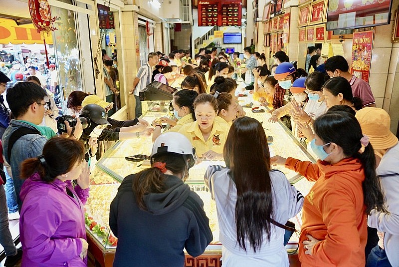 Ghi nhận của phóng viên Báo Công Thương cho thấy, tại các tiệm vàng như: Cửa hàng Mi Hồng (quận Bình Thạnh), cửa hàng vàng khu vực quận 1 của Công ty CP Vàng bạc Đá quý Phú Nhuận (PNJ), cửa hàng vàng tại chợ Bến Thành khu vực quận 1, cửa hàng vàng SJC khu vực quận 3... có rất đông người dân tập trung mua vàng.