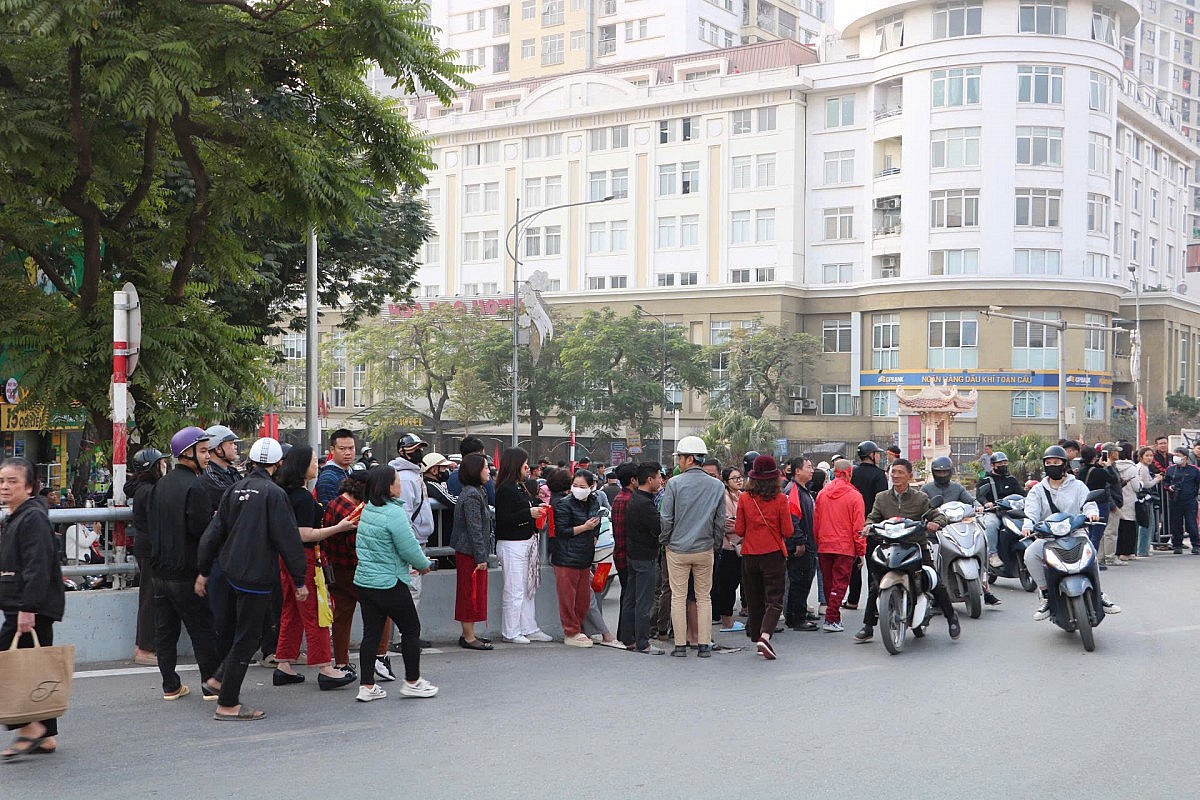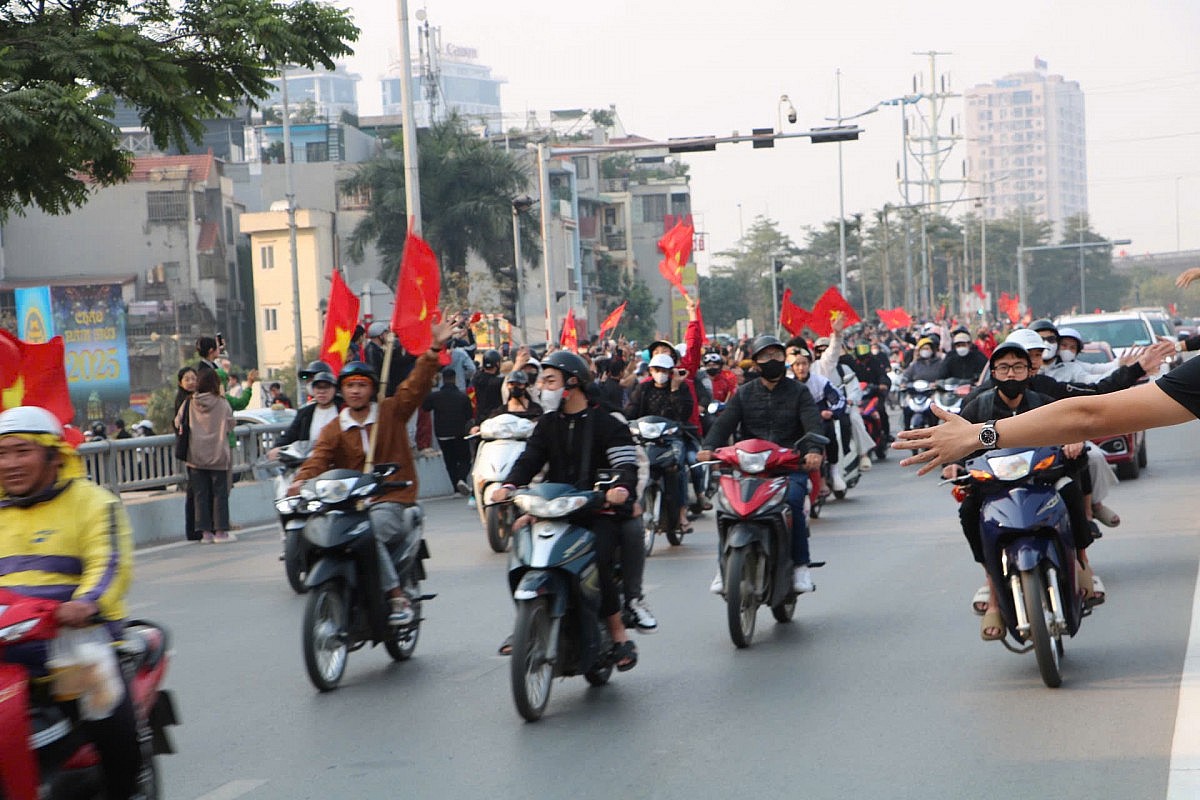 Lượng người đổ ra đoạn đường rất đông chào đón đội tuyển Việt Nam trở về sau chiến thắng nghẹt thở ở trận chung kết AFF Cup 2024 trước tuyển Thái Lan. Ảnh: Phong Lâm