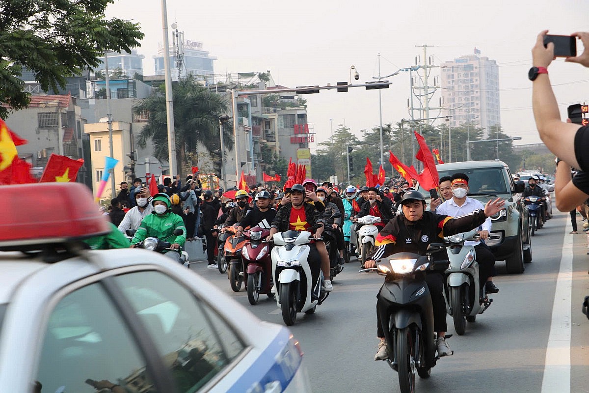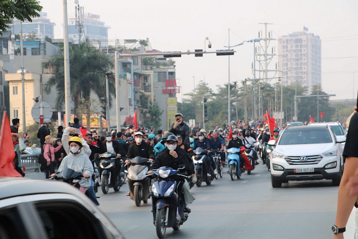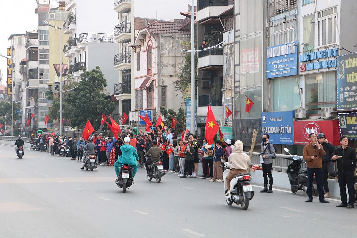 Người hâm mộ đứng kín đường đón đội tuyển Việt Nam