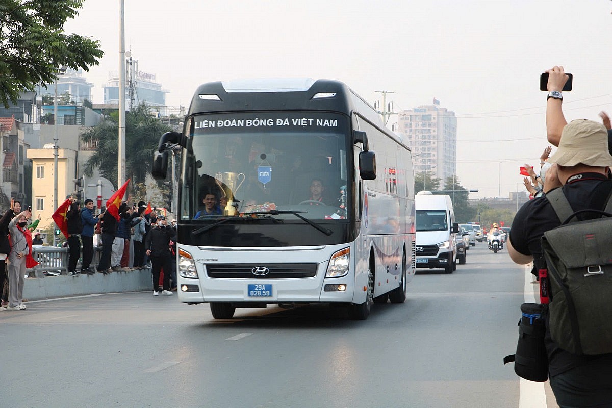 Chiều 6/1, chuyến bay chở đội tuyển Việt Nam đã hạ cánh tại sân bay Nội Bài (Hà Nội). Sau đó, đoàn xe chở đội tuyển đã di chuyển từ Nội Bài về trụ sở Chính phủ để dự lễ mừng công.