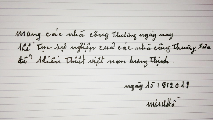 | Dòng chữ của cụ bà Hoàng Thị Minh Hồ gửi tới các nhà Công Thương Việt Nam |