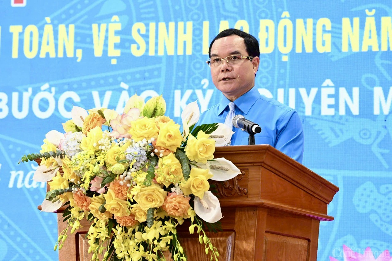 | Chủ tịch Tổng Liên đoàn Lao động Việt Nam Nguyễn Đình Khang phát biểu tại Lễ phát động Tháng Công nhân và Tháng hành động về an toàn, vệ sinh lao động năm 2025. Ảnh: Cấn Dũng |