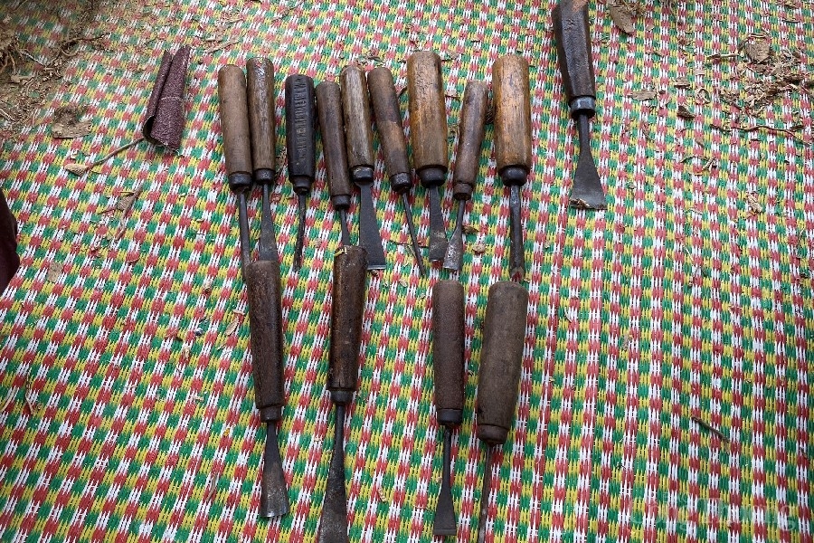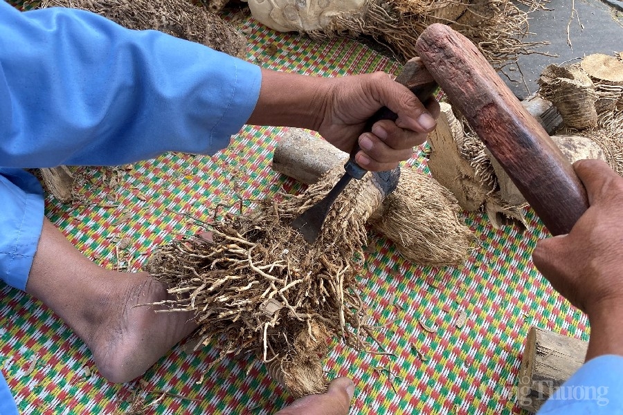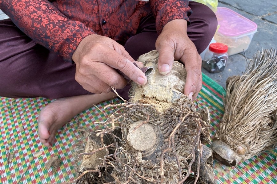 | Từ những gốc trè xù xì, xấu xí mà người ta bỏ đi, ông Đỏ thu mua về để điêu khắc. Mới đầu, ông Đỏ thu mua tre của những người trong làng, trong thôn, nhưng khi nhu cầu ngày một lớn, ông quyết định đi săn tre từ nhiều nơi. Ông Đỏ cho biết, tre dùng để điêu khắc phải đích thân mình lựa chọn, kiểu dáng nào phù hợp để đục đẽo, chất lượng ra sao. “Tôi phải đích thân đi lựa gốc tre, vì đây là nghề thủ công, tự tay làm nên tôi biết được gốc tre như nào là phù hợp. Mới đầu, tôi lặn lội đi mua gốc tre từ nhiều tỉnh thành lân cận, nhiều người thấy vậy lại bảo tôi dở hơi, đi mua gốc tre làm gì, chẳng ai biết được một ngày tôi sẽ có thể hoàn thành những tác phẩm như thế.", ông Đỏ cười. |