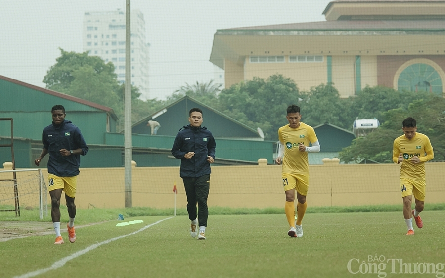 Buổi tập của Michael Olaha và các đồng đội tại sân Sông lam Nghệ An.