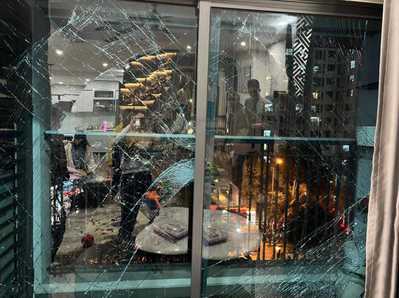 | Vụ nổ đã khiến nhiều căn hộ tại toà S2, chung cư Goldmark City đối diện quán sửa xe bị rạn, vỡ kính |