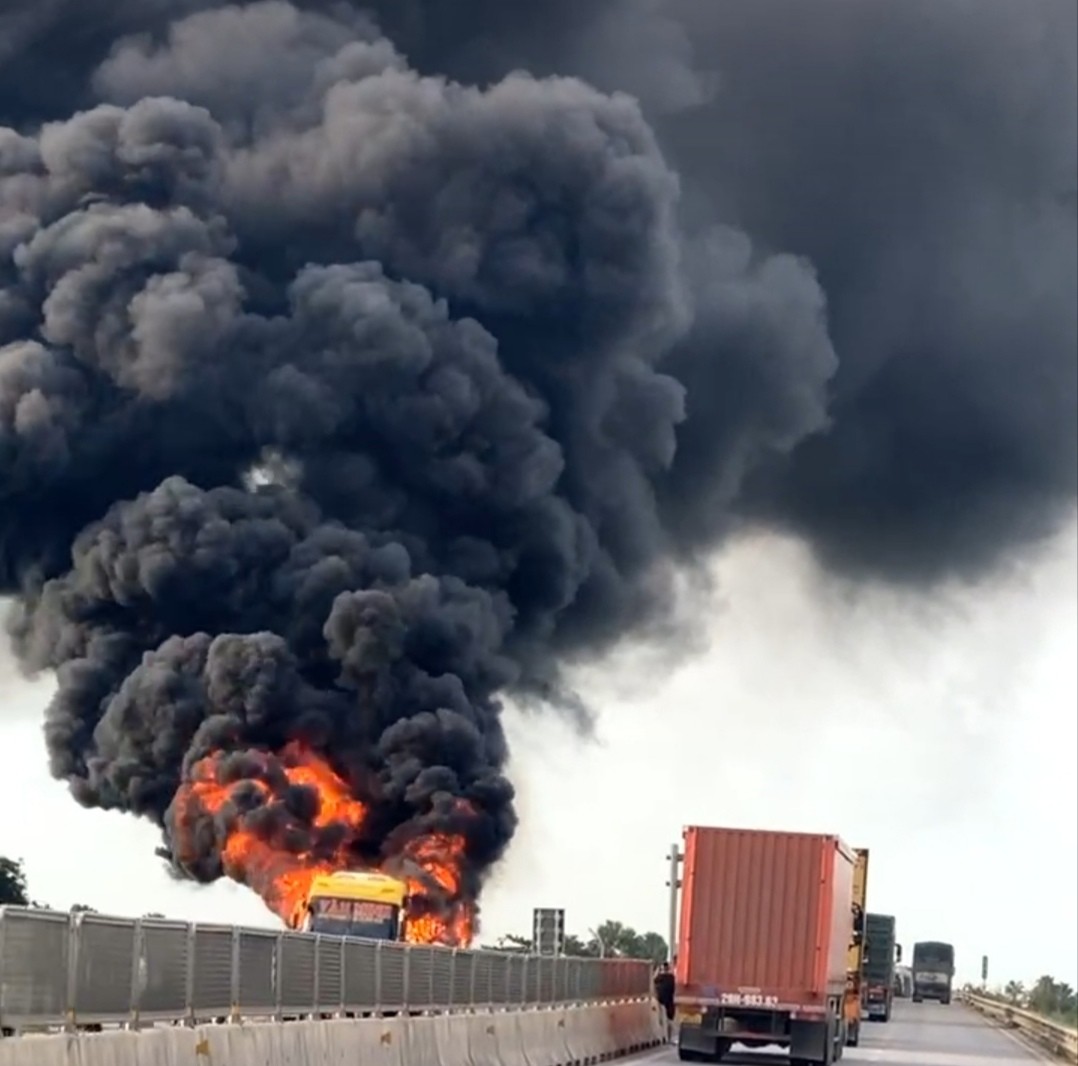Lửa kèm theo tiếng nổ lớn đã khiến cho các phương tiện lưu thông cùng chiều phải dừng lại, cách vụ cháy khoảng 700m để đảm bảo an toàn.