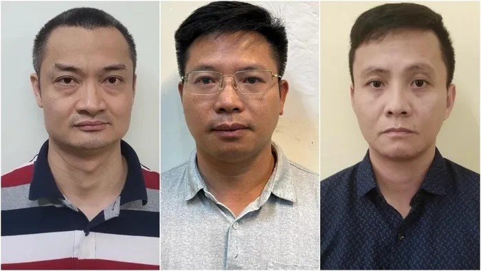 | Từ trái qua phải: Bị can Khương Thanh Tùng, Đoàn Ngọc Phương, Cao Đại Nghĩa. (Ảnh: Bộ Công an) |
