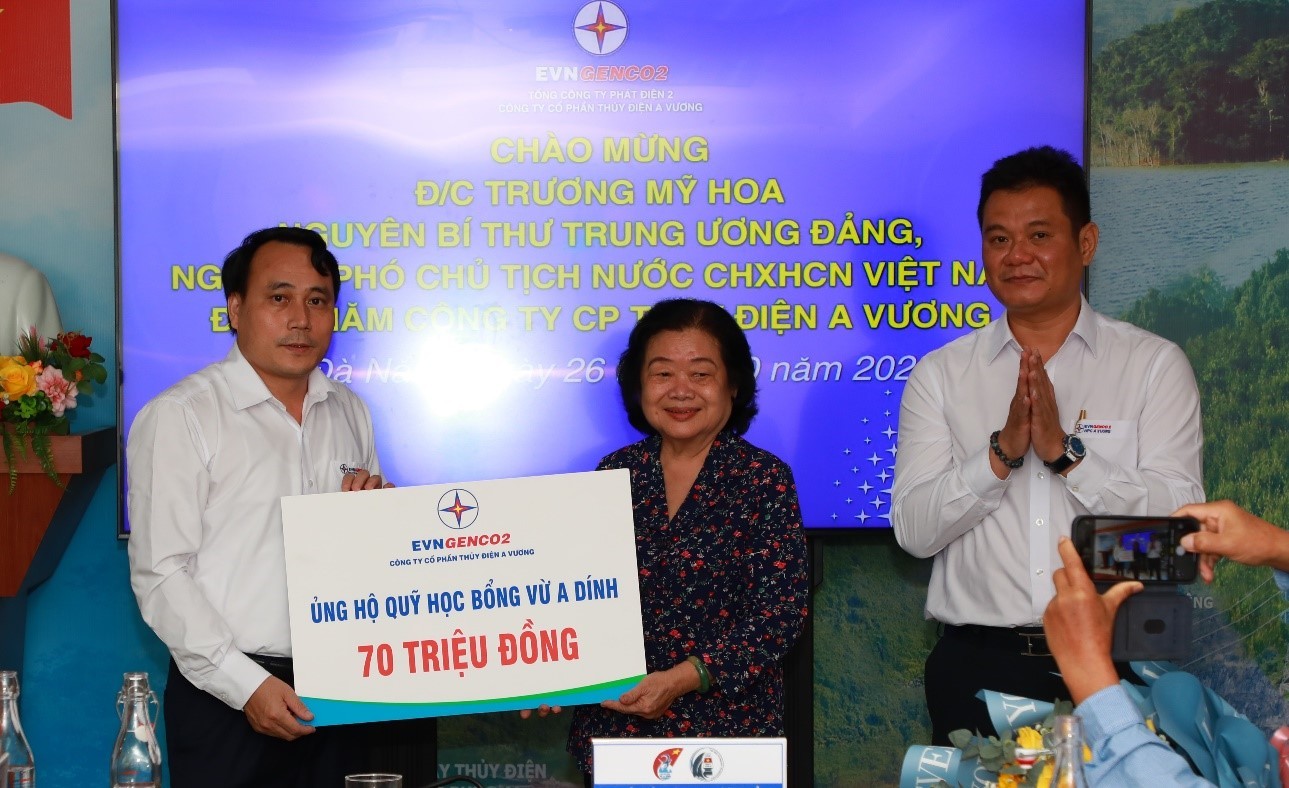 Mới đây, nguyên Phó Chủ tịch nước Trương Mỹ Hoa, Chủ tịch Quỹ học bổng Vừ A Dính và Đoàn công tác đã lên thăm Nhà máy thủy điện A Vương, thăm và làm việc tại Công ty cổ phần thủy điện A Vương (AVC).