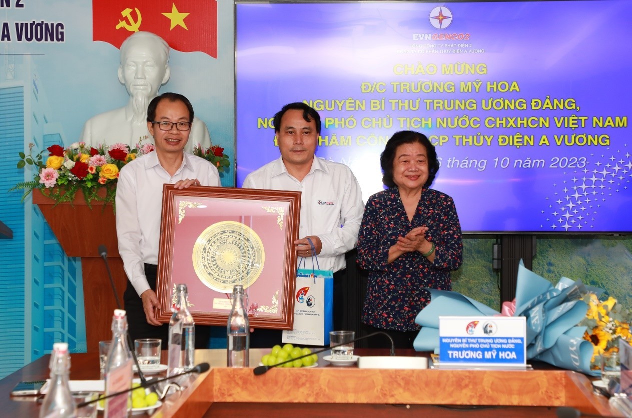 | Công ty Cổ phần Thủy điện A Vương nhận quà lưu niệm của nguyên Phó Chủ tịch nước Trương Mỹ Hoa |