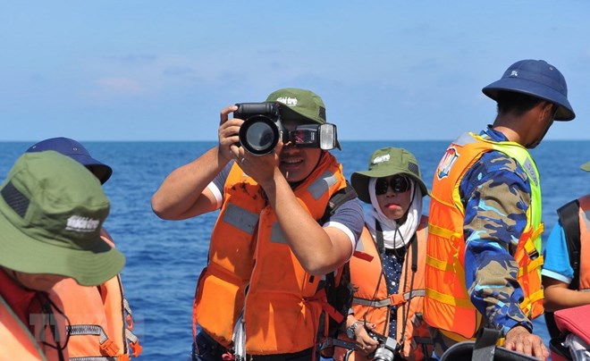 | Phóng viên tác nghiệp tại quần đảo Trường Sa |