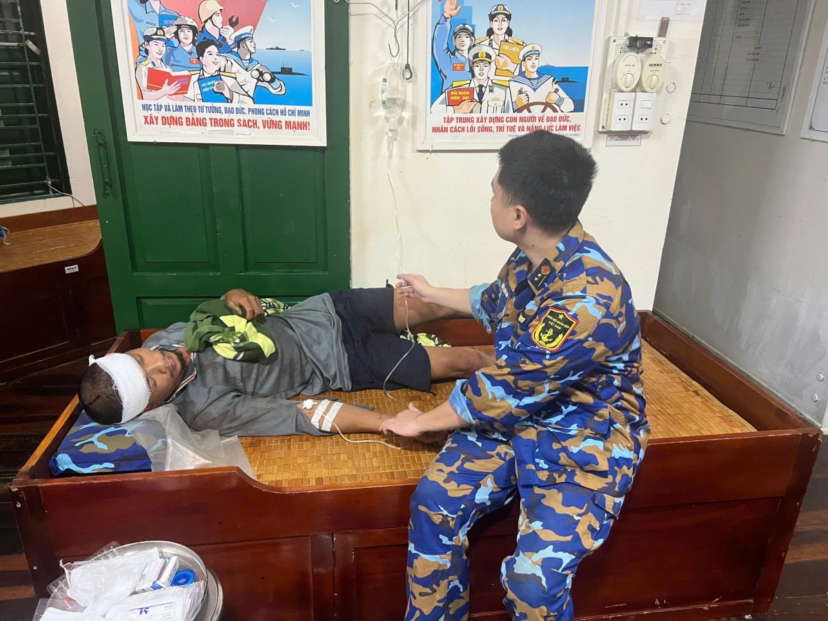 Sau khi nhận được thông tin, Nhà giàn DK1/10 đã cử Tổ Quân y tiếp cận và tiến hành cấp cứu vết thương ở đầu bên trái, phía sau của nạn nhân; vết thương rộng 6cm, sâu 1,5 cm. Đồng thời tiến hành các biện pháp truyền dịch, vệ sinh rửa vết thương, gây tê, khâu vết thương, kháng sinh giảm đau, băng bó vết thương. Sau khi được cán bộ, chiến sĩ chăm sóc, ngư dân bị nạn đã tỉnh táo, tiếp xúc tốt, sức khỏe đã ổn định.