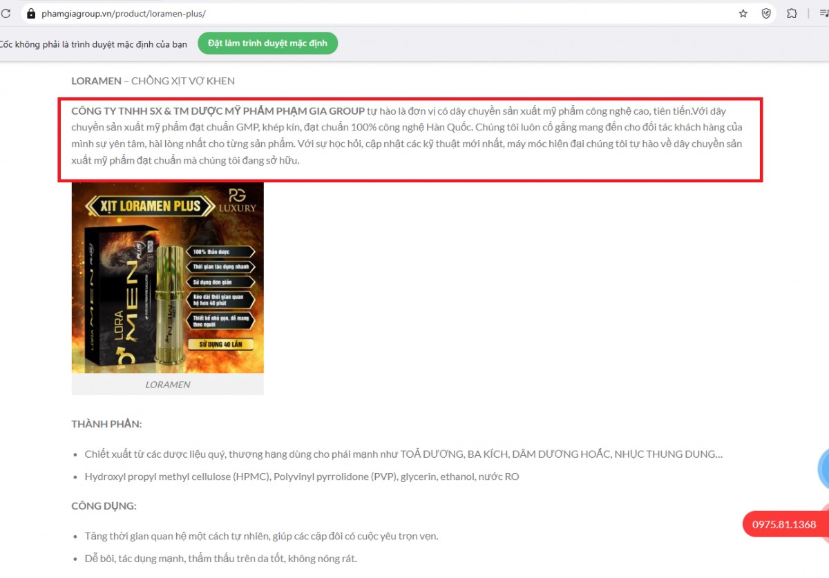 Truy cập vào trang web https://www.phamgiagroup.vn/ trên biển hiệu nhà máy, trang này giới thiệu của Công ty TNHH SX & TM dược mỹ phẩm Phạm Gia Group. Công ty có văn phòng tại Hà Nội, miền Trung và miền Nam.
