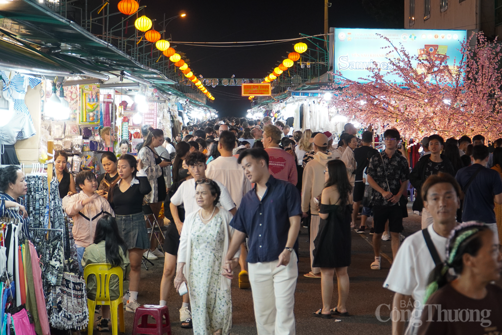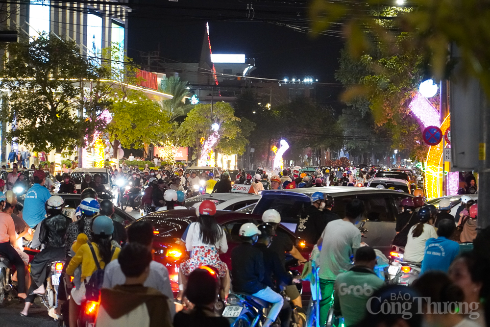 | Chợ đêm Nha Trang - đối diện Quảng trường 2/4, nằm trên tuyến đường giao giữa Trần Phú và “khu phố Tây” Hùng Vương nhộn nhịp du khách tối cuối năm. "Tôi và bạn đến quảng trường từ sớm để tránh cảnh đông đúc, tắc đường nhưng không ngờ nhiều người khác cũng vậy. Không khí rất náo nhiệt, ai cũng phấn khởi cả", anh Bùi Quốc - du khách Đà Nẵng - nói. |