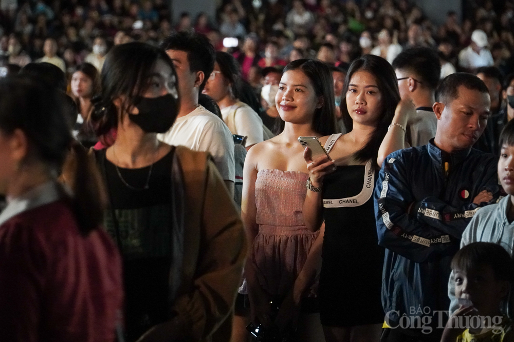 | Ở phía dưới quảng trường chật kín người xem văn nghệ. |