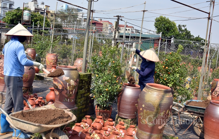 Ông Luận bật mí, làm đất là công việc hồi sinh đầu tiên của cây quất cảnh. Trên nền đất canh tác cũ, nhà vườn phải rắc vôi bột để khử độc tiêu trùng tiêu diệt và ngăn chặn các mầm bệnh cho đất. Với các cây trồng trong chum vại thì phải thay đất mới hoàn toàn. Các nhà vườn thường mua đất phù sa sông Hồng trộn với phân bò, phân trâu và cả đỗ tương ủ gần một năm trời trước khi đem bón cho cây. Đất màu mỡ, giàu dinh dưỡng giúp cây quất cảnh sinh trưởng và phát triển tốt hơn và ngăn chặn được dịch bệnh trên nền đất cũ.