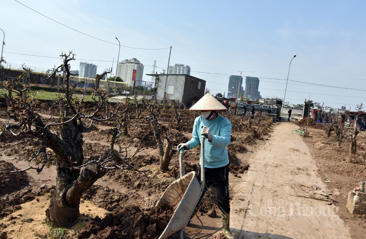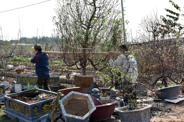 Không khí làm việc tại các nhà vườn đào quất nhộn nhịp không kém so với lúc trước Tết. Chỗ này trộn đất, xe đất, chỗ kia đào hố hạ bồn, tách cây từ chậu xuống đất, cắt tỉa cành… tất cả phải làm khẩn trương, để chuẩn bị cho mùa đào, quất mới.