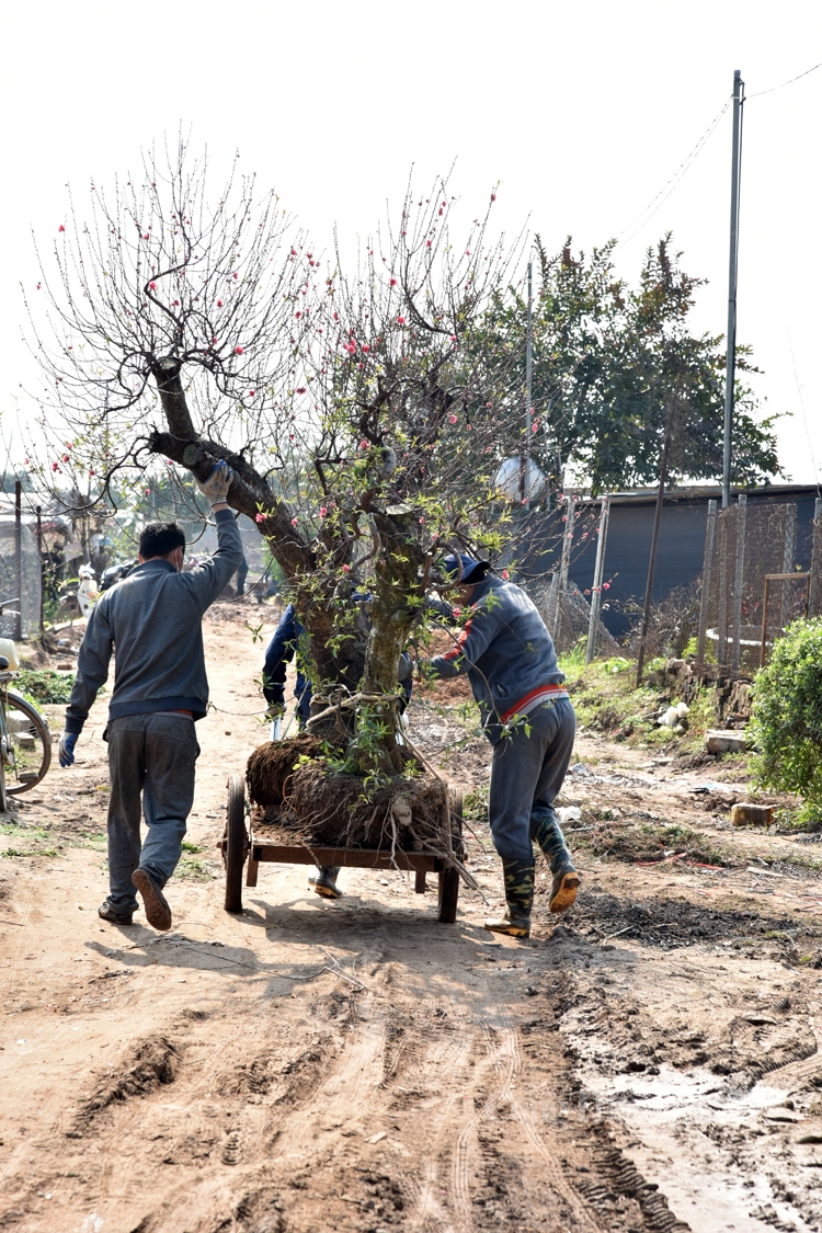 Có mặt tại tại Nhật Tân, Tứ Liên, chúng ta dễ dàng bắt gặp những chuyến xe chở những cây đào, quất có phần rủ hoa, héo lá rụng quả tập kết tại các nhà vườn. Đây là những cây đào quất sau khi được chưng Tết, tô điểm cho hương sắc mùa xuân tại mỗi gia đình nay được được thu mua quay trở về với mảnh đất thân thuộc của mình.