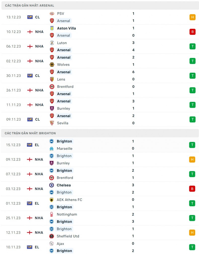 | Trận đấu giữa Arsenal và Brighton sẽ diễn ra lúc 21h00 ngày 17/12 trong khuôn khổ vòng 17 Ngoại hạng Anh. |