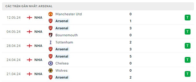 Arsenal dẫn trước trong hiệp một và cả trận trong 5 trận gần nhất ở Premier League.