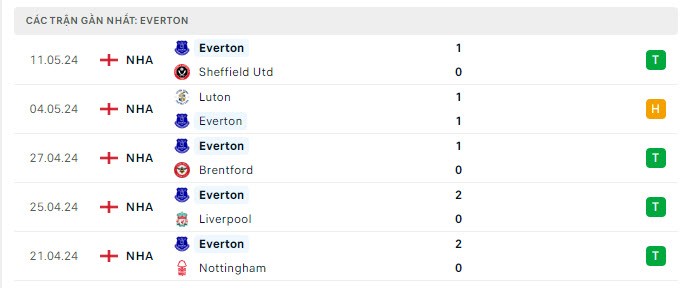 Everton thắng 4 và hòa 1 trong 5 trận gần nhất ở Premier League.