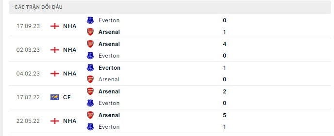 Arsenal thắng Everton với cách biệt 4 bàn trong 2 trận gần nhất trên sân nhà ở Premier League.