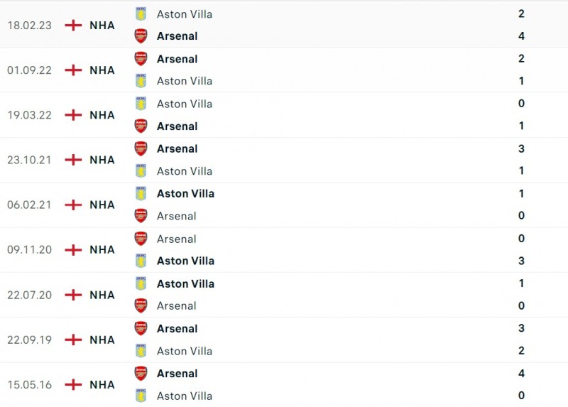 - Arsenal thắng 4 trận gần nhất đối đầu Aston Villa.