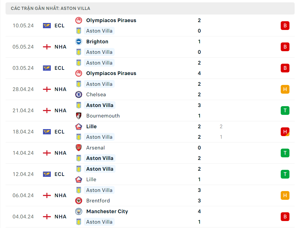 Aston Villa đang trải qua 3 trận thua liên tiếp trên mọi đấu trường.
