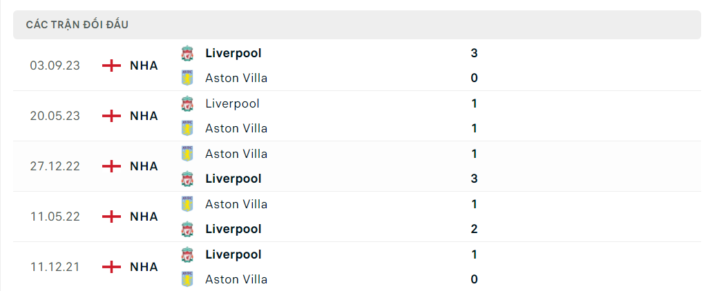 Liverpool bất bại trong 7 trận gần nhất gặp Aston Villa.