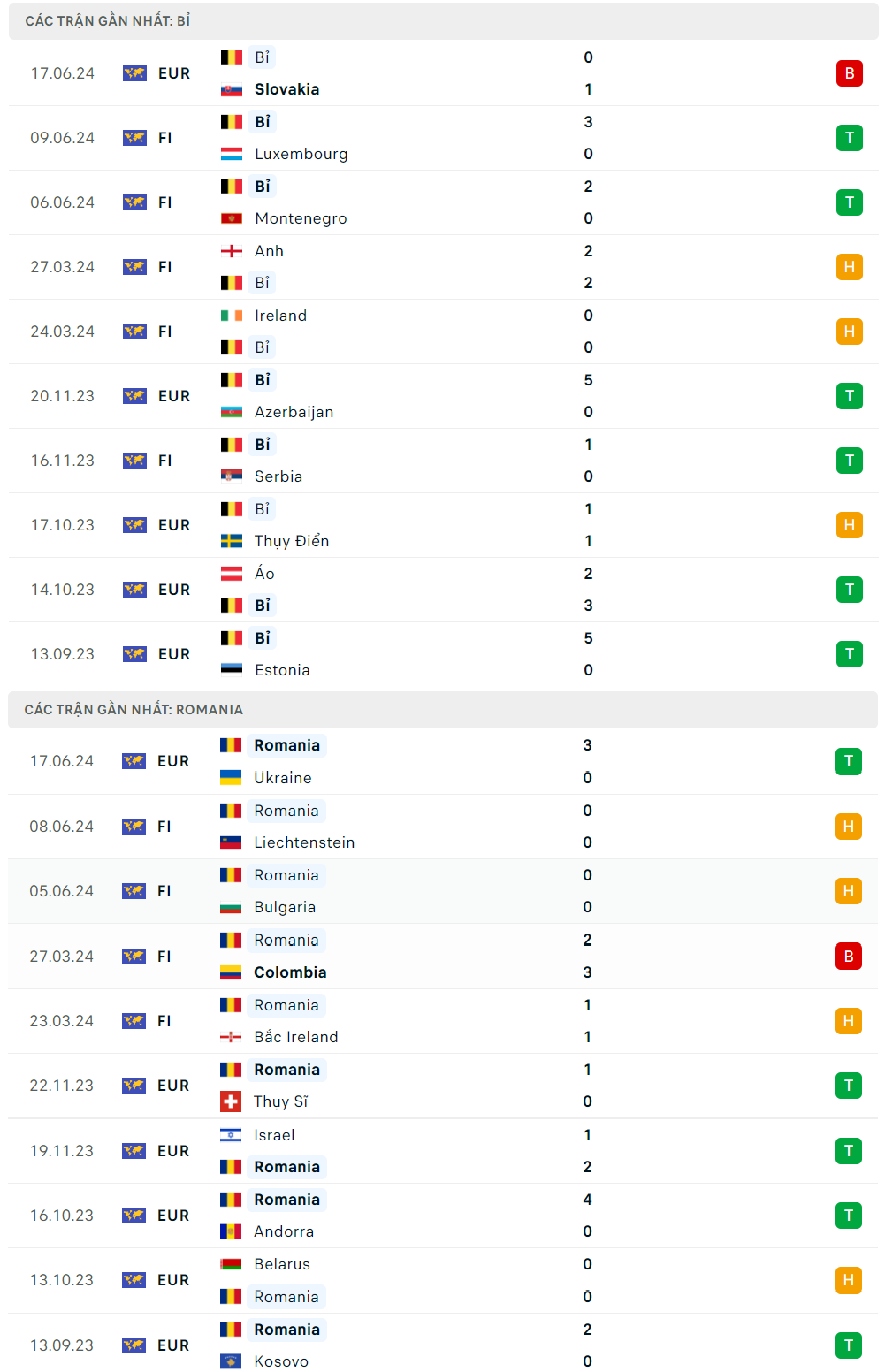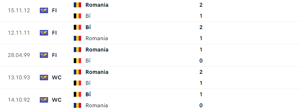 - Bỉ thắng 1 và thua 1 trong 2 trận gần nhất đối đầu Romania.