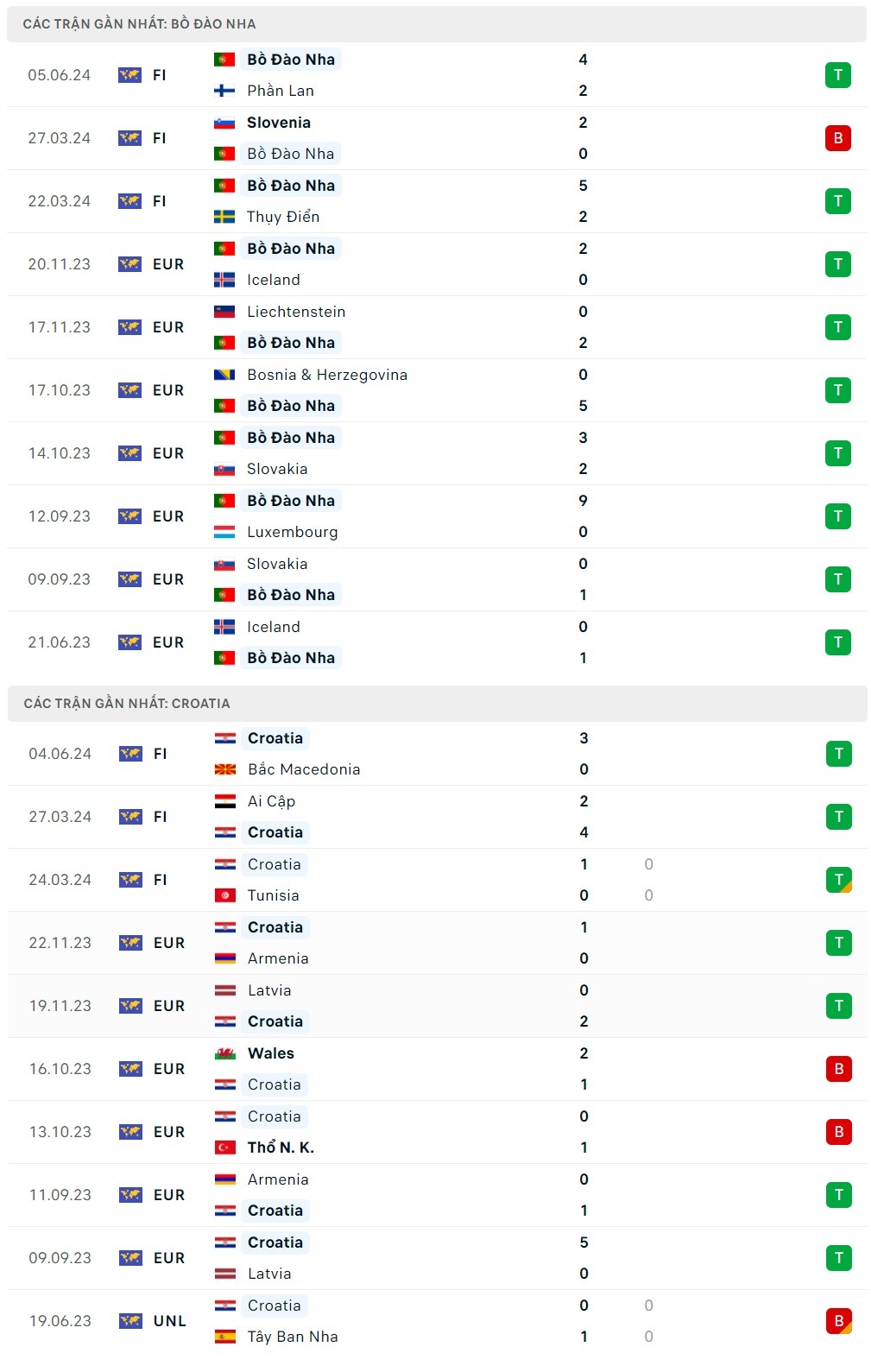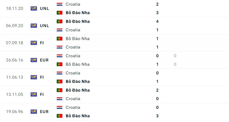 - Bồ Đào Nha không thua trong 6 trận gần nhất gặp Croatia.