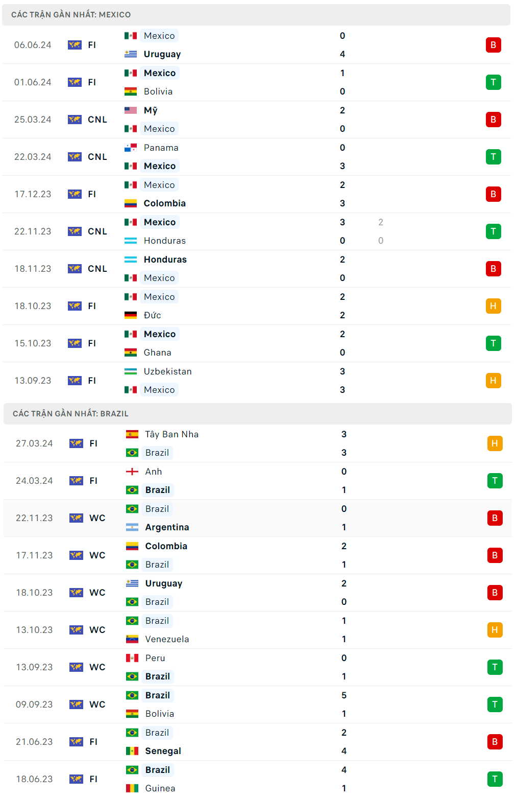| Trận Brazil và Mexico diễn ra lúc 8h00 ngày 09/6 thuộc trận đấu giao hữu quốc tế 2024 |
