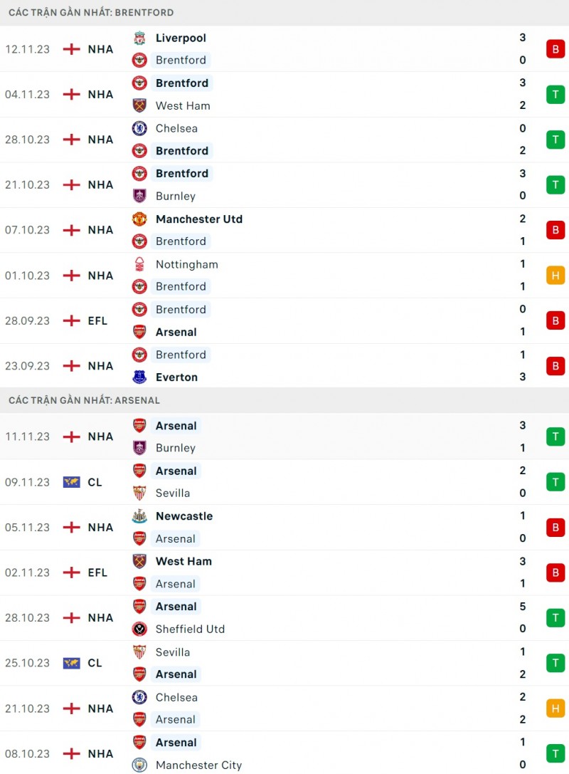 - Arsenal thắng 2 trận gần nhất làm khách trên sân của Brentford trên mọi đấu trường.