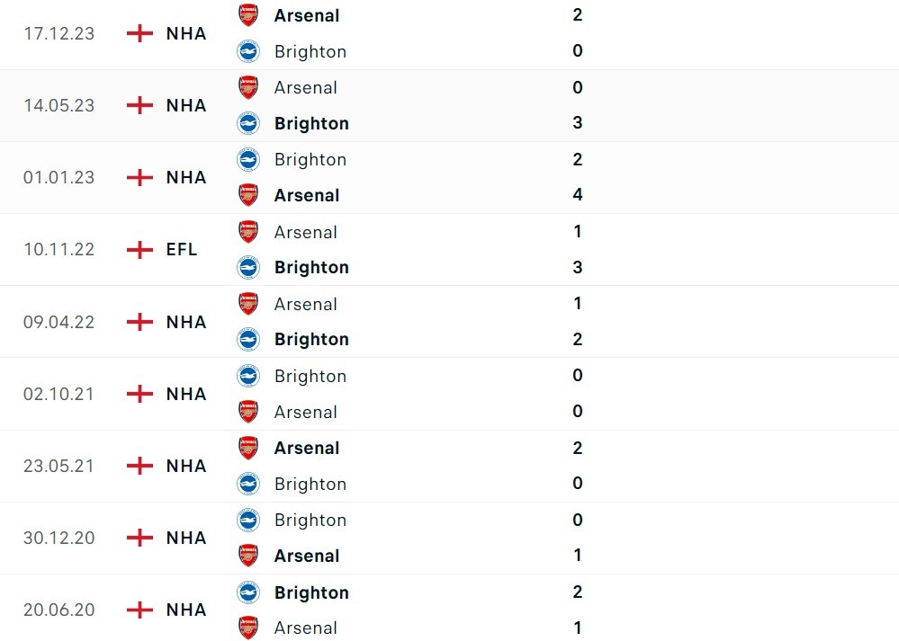 Trên thực tế đội chủ sân Emirates cũng đã cảm nhận được sự khó chịu của Brighton khi họ mới thắng có 2, hòa 1 và thua tới 3 lần ở 6 lần chạm mặt gần nhất. Với thành tích đối đầu kể trên, người hâm mộ Arsenal hoàn toàn có lý do để lo ngại cho đội nhà ở trận đấu đêm nay.