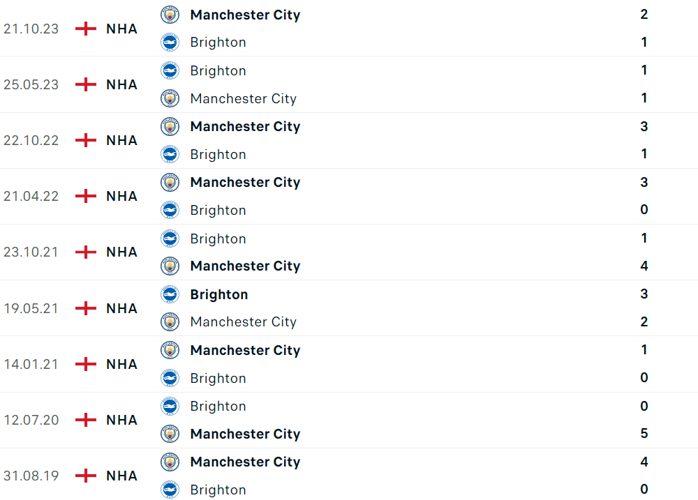 Man City đã ghi bàn trong tất cả 13 lần gặp Brighton ở giải đấu cao nhất bóng đá Anh.