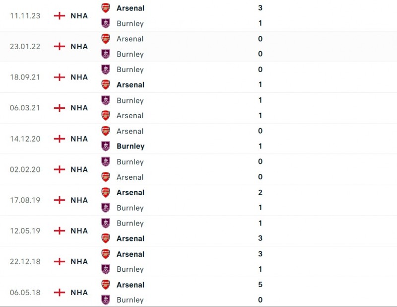 Trong 10 trận gần nhất làm khách trên sân của Burley, Arsenal đã thắng 6 và chỉ thua 1.