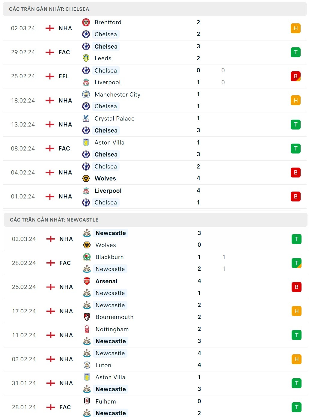 Trước màn so tài này, hai bên đã có hai lần đối đầu ở mùa giải năm nay. Trong đó, Chelsea đã có trận thua thảm bại 1-4 trên sân của Newcastle ở trận lượt đi Ngoại hạng Anh mùa này.