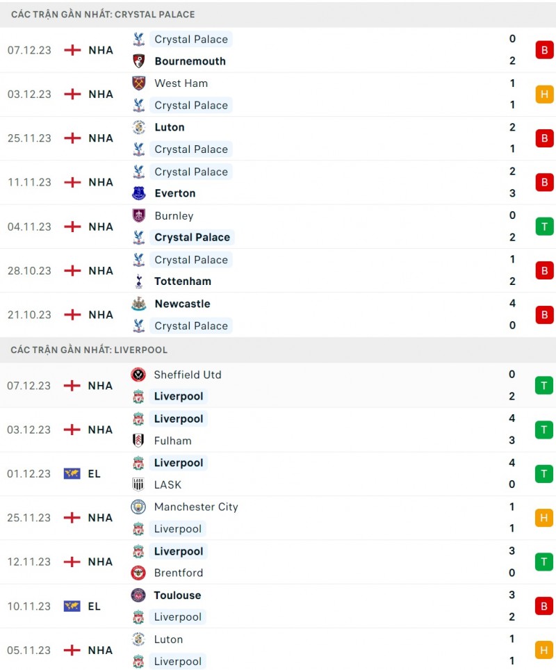Tuy vậy họ chắc chắn sẽ phải thi đấu tập trung và không được phép xem thường đối thủ bởi ở hai trận gần nhất Liverpool đều không thể giành 3 điểm trước Crystal Palace. Trong hai trận đấu lượt đi và về ở giải Ngoại hạng Anh mùa bóng 2022/2023, đoàn quân của Jurgen Klopp đều phải chịu cảnh chia điểm sau các trận hòa với tỷ số 1-1 và 0-0.