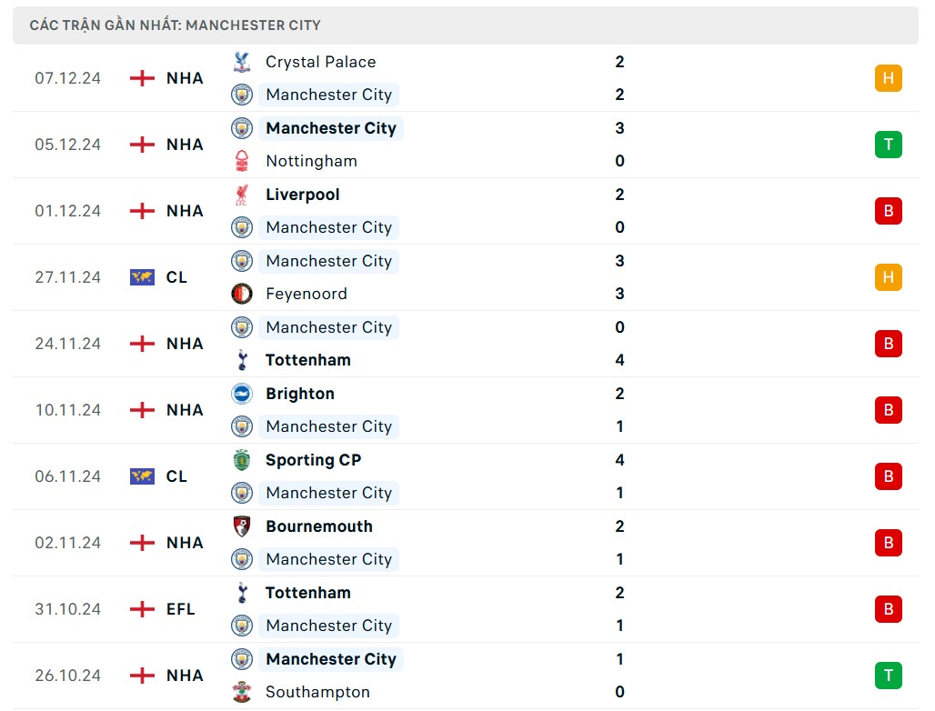 Man City chỉ giành được 1 chiến thắng trong 9 trận gần nhất.