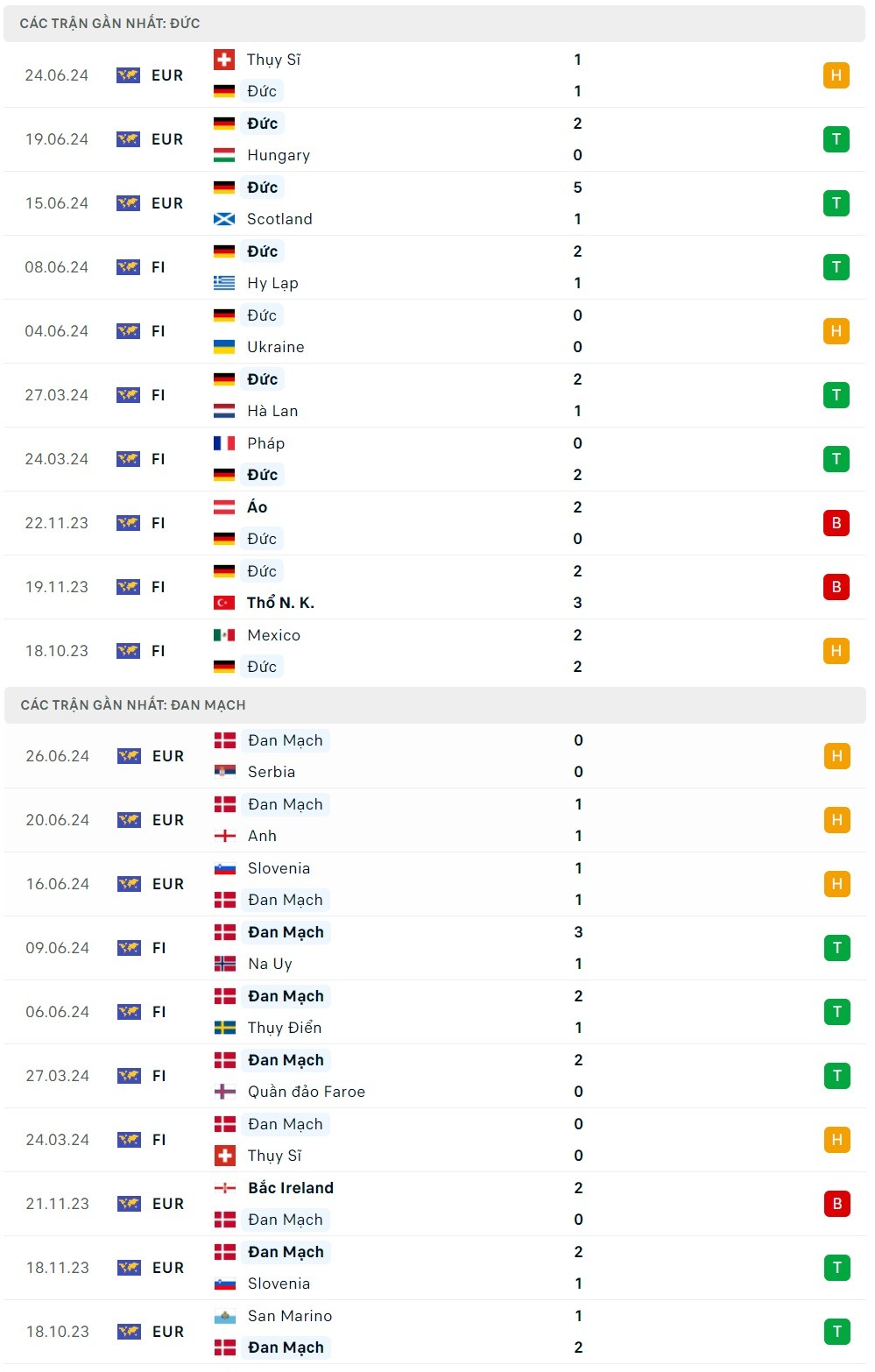 10 trận gần đây Đức nhận 1.1 bàn thua/trận còn Đan Mạch là 0.8 bàn thua/trận.