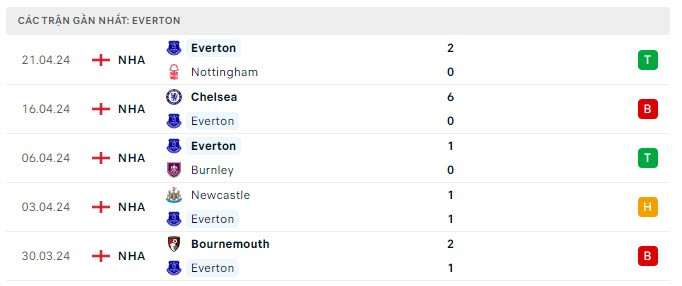 Everton thắng 2 trong 3 trận gần nhất ở Premier League.