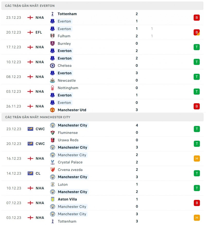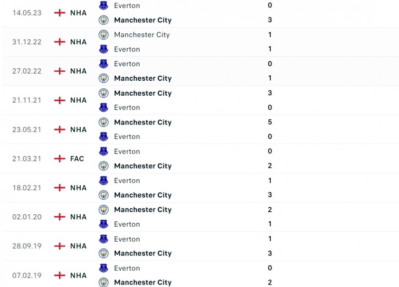 Ở mùa giải năm ngoái, trên sân nhà, Everton dễ dàng nhận thất bại với tỷ số 0-3. Theo thống kê, trên sân nhà, Everton toàn thua trong 7 trận gần nhất trước Man City. Xa hơn, nửa xanh thành Manchester thắng 11 trong 12 trận gần đây trên sân nhà Goodison Park. Bởi vậy khả năng cao trận đấu tới sẽ khép lại với một thắng lợi cách biệt dành cho đội khách.