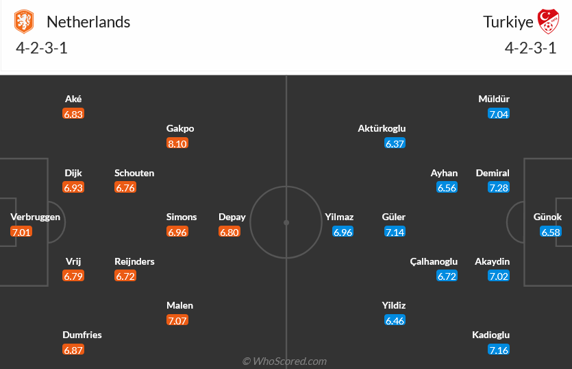 Dự đoán tỷ số Hà Lan và Thổ Nhĩ Kỳ: 3-1.