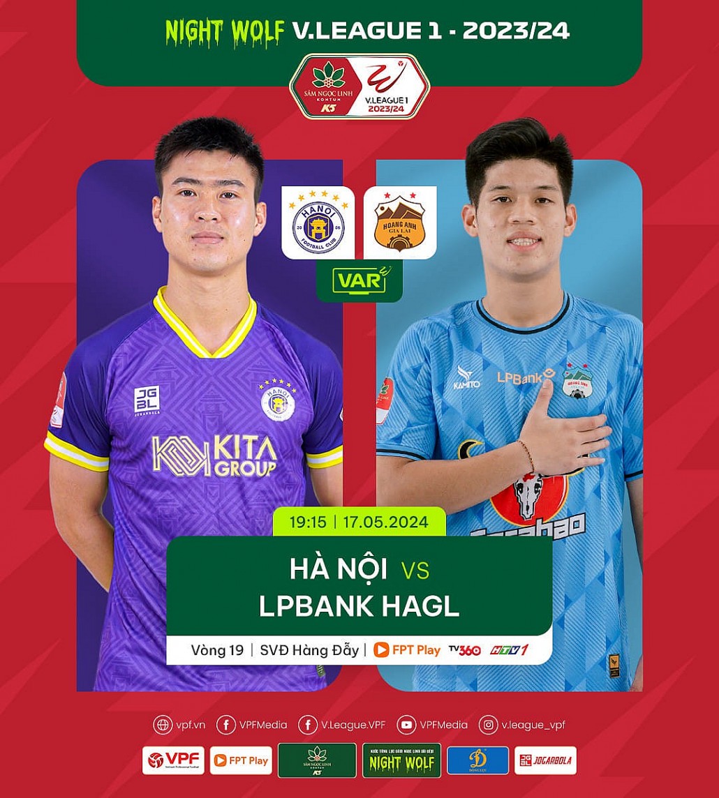 | Trận đấu thuộc Vòng 19 V-League 2023/2024 giữa Hà Nội và HAGL sẽ diễn ra trên SVĐ Hàng Đẫy vào lúc 19h15 ngày 17/5 (Ảnh: V-League) |