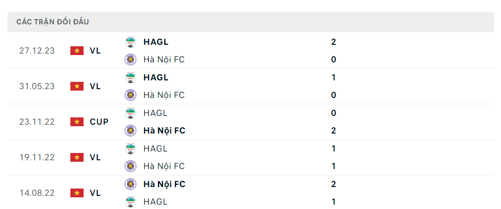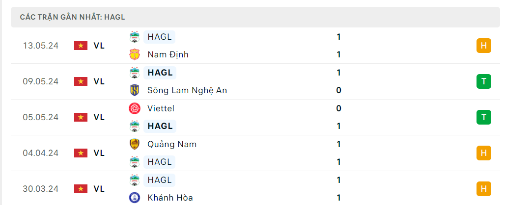 5 trận gần nhất của HAGL đều có ít hơn 3 bàn thắng.