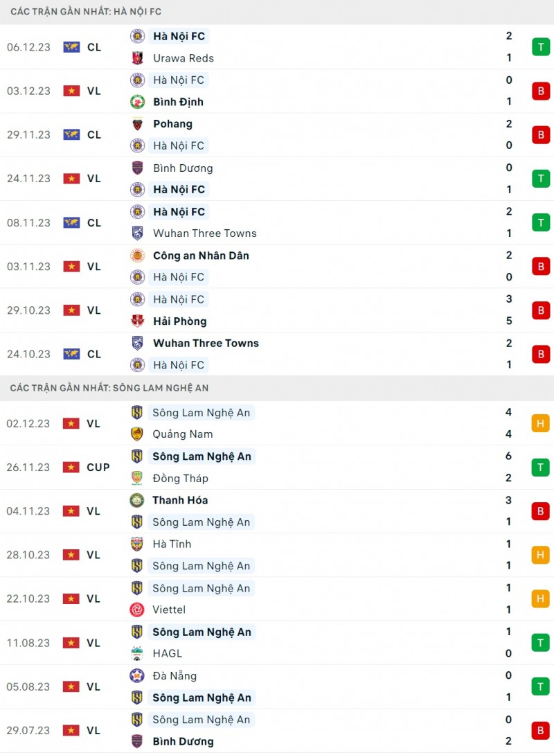 | Trận Hà Nội và SLNA diễn ra lúc 19h15 ngày 10/12, thuộc Vòng 5 V-League 2023/2024 |
