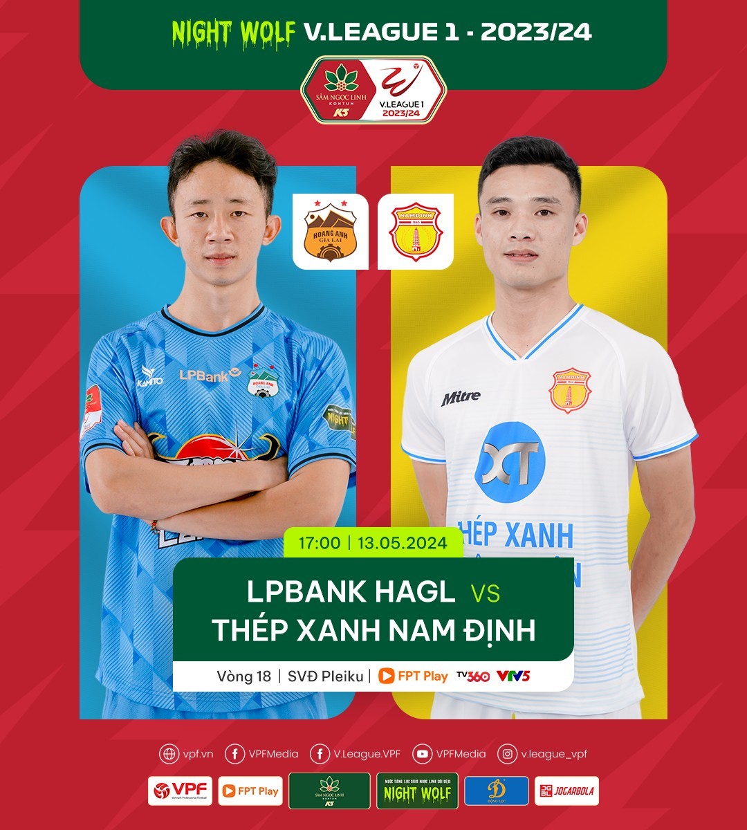 | Trận đấu thuộc Vòng 18 V-League 2023/2024 giữa HAGL và Nam Định sẽ diễn ra và lúc 17h ngày 13/5 trên SVĐ Pleiku. (Ảnh: FPT) |