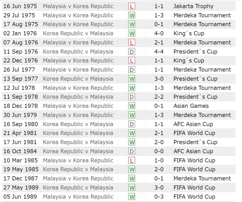 - Hàn Quốc từng thua 0-1 trước Malaysia ở vòng loại World Cup 1986.