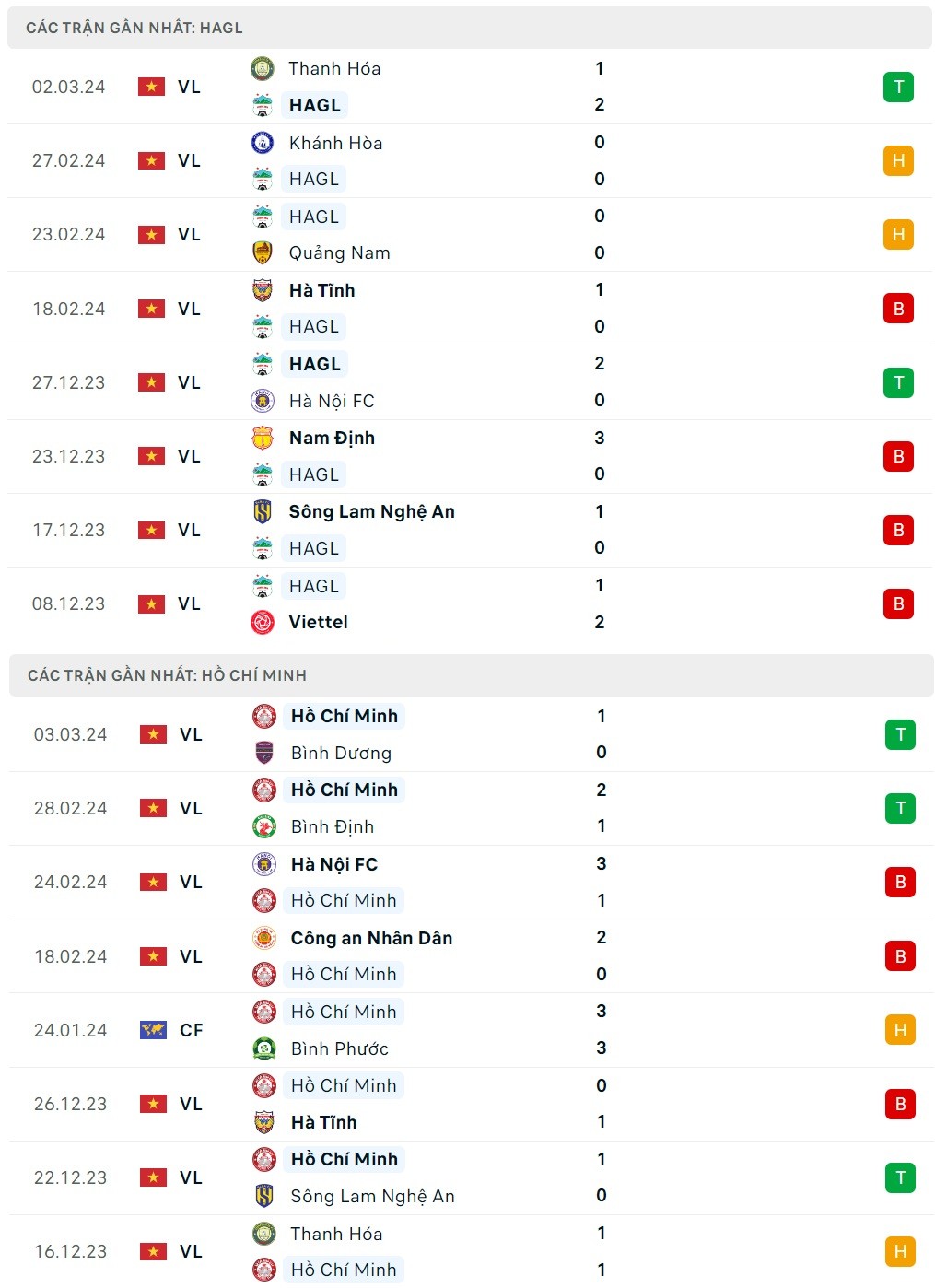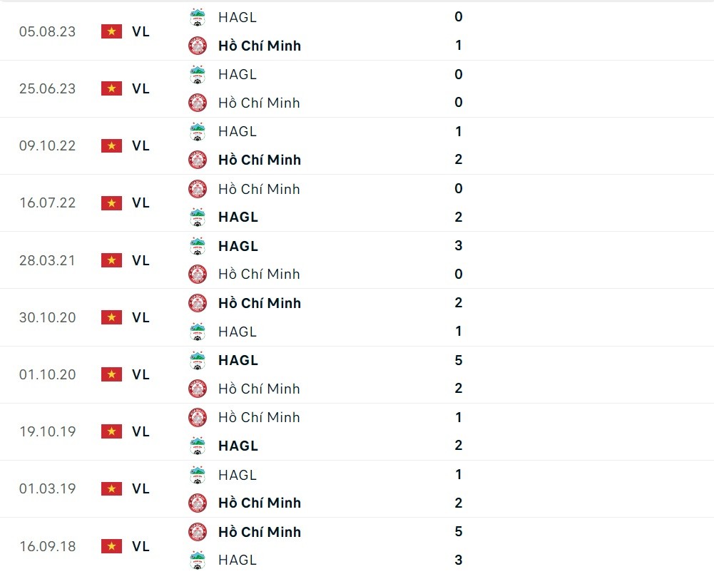 Theo thống kê lịch sử đối đầu, Hoàng Anh Gia Lai và TP. Hồ Chí Minh FC đang khá ngang tài ngang sức. Cụ thể, trong 5 lần đụng độ gần nhất, mỗi đội đều giành được 2 chiến thắng và có 1 trận hoà. Lần gặp nhau gần nhất là vào tháng 8/2023. Trong trận đấu đó, "Chiến hạm đỏ" đã giành trọn 3 điểm để rời sân Pleiku. Và liệu rằng ở màn đối đầu này, ông Phùng Thanh Phương có thể giúp đội khách làm điều tương tự hay không.