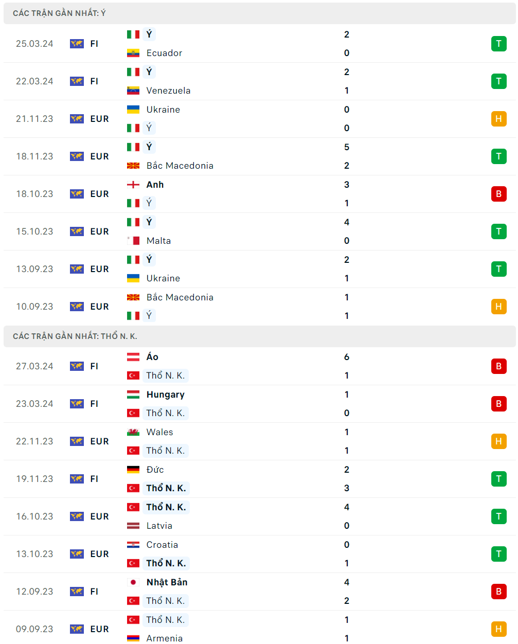 - Italia thắng 3 trận gần nhất đối đầu Thổ Nhĩ Kỳ.